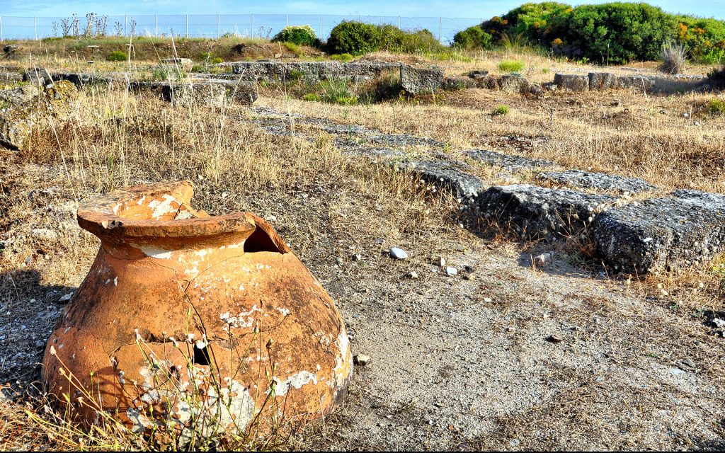 Ancient Mende, which flourished due to the exports of the prominent Mendean wine, was one of the colonies of Eretria founded in the peninsula of Pallini in the 8th c. B.C. The main archaeological site covers an area of 1200 by 600 meters and lies on a verdant hill covered in pine trees, which descends to the sea.
